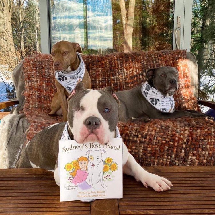And last but not least, I wanted to tell a sweet story! This is a lovely story about the strong bond between a child and her dog, with take away messages for children and a happy ending. The idea for this first book, Sydney’s Best Friend, came to mind when another child made unfair comments about our dog because of how she looked. Bella was a big dog with a blocky head and a muscular chest. This same type of interaction has occurred several times since then with all three of our dogs. And our dogs are good dogs, well-trained dogs, and we are a family of responsible dog owners.