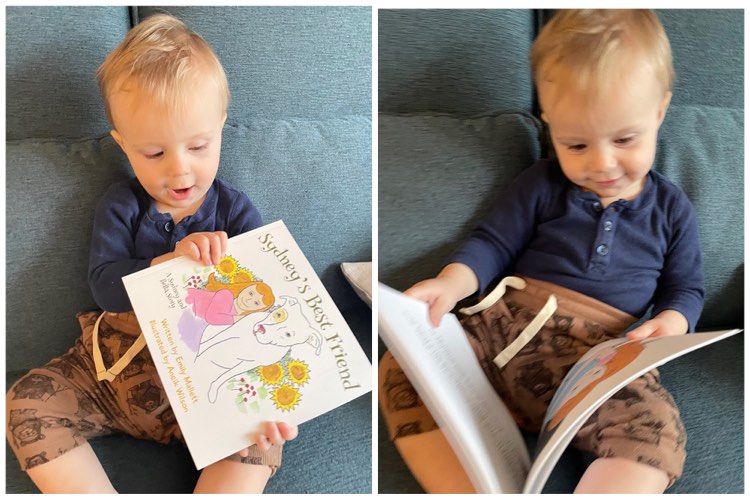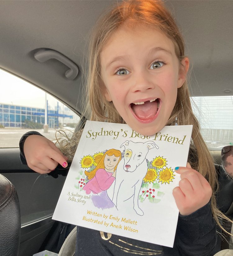 Absolutely! The next book will be called “Sydney’s Wish”, inspired by our second dog, Dubbers, who was actually one of Bella’s puppies. We had to rescue him back from his owner when Dubbers was ten years old. Dubbers had never been around young children and my daughter was three at the time. There were many challenges to overcome. We had planned to foster Dubbers either until his owner was fit to have him back, which never happened, or we were going to adopt him to a loving home … until my daughter made a wish on Santa’s lap! You’ll have to read the book to her the rest! The third book will the toughest to write and read aloud, entitled “Sydney’s Hardest Day”, it will cover the topic of loss. Our entire family surrounded Bella as she took her last breath. As painful and difficult of a subject as that is, I feel it’s important to normalize that experience for children. And the fourth in the series will be called “Sydney’s New Friend”, about our new puppy, Big Ben! He is night and day from Bella and Dubbers and there are many new lessons for children when it comes to having a new puppy, especially one who is 72 pounds at only one year old!